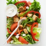 U zdjeli pomiješajte sok od limuna, maslinovo utje, papar i sol. Dodajte kopar, mladi luk, naribanu mrkvu, rajčicu i sve promiješajte. Dodajte sir i još jedanput promiješajte. Na četiri tanjura rasporedite opranu i ocijedenu zelenu salatu i preko nje začinjenu miješanu salatu.